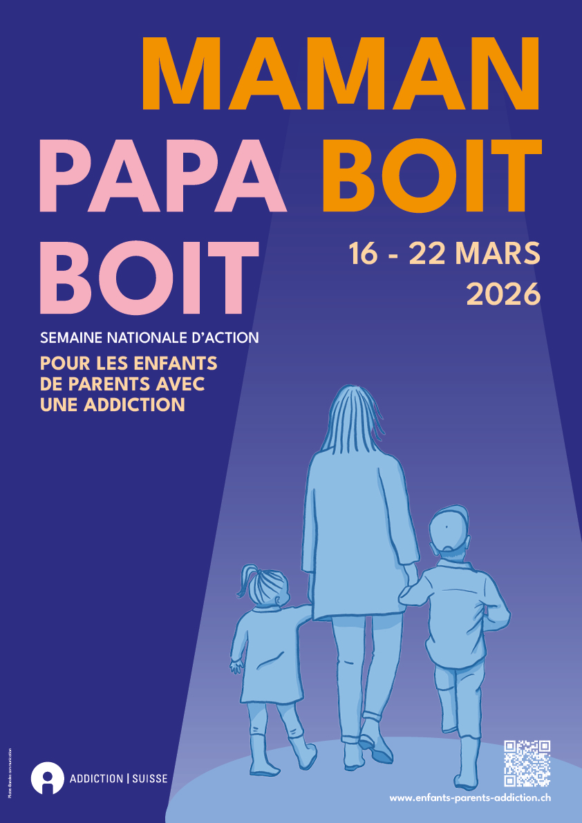 © Addiction SuisseEn Suisse, quelque 100 000 enfants vivent avec un parent qui a une consommation problématique d’alcool ou d’une autre substance. Cette situation est rendue visible par la Semaine nationale d’action coordonnée par Addiction Suisse qui se déroule du 16 au 22 mars 2026. Dans toute la Suisse, des institutions régionales organisent des actions durant cette semaine pour visibiliser la thématique et/ou faire connaître les prestations qu’elles offrent à ces familles. Les actions visent autant le grand public que les professionnel∙le∙s qui travaillent avec les enfants et/ou les parents.
