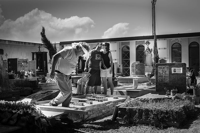 Aurélie et Vincent Masciulli ont intitulé leur série «Ciao Nonna». Les photographies ont été réalisées lors d'un récent deuil familial en Italie. Les scènes insistent sur la dimension collective et familiale du deuil. Elles montrent aussi comment la vie fait irruption dans ces moments. Les membres de la famille «fabriquent» la dernière demeure. Ils ne vivent pas seulement le deuil, ils font le deuil.