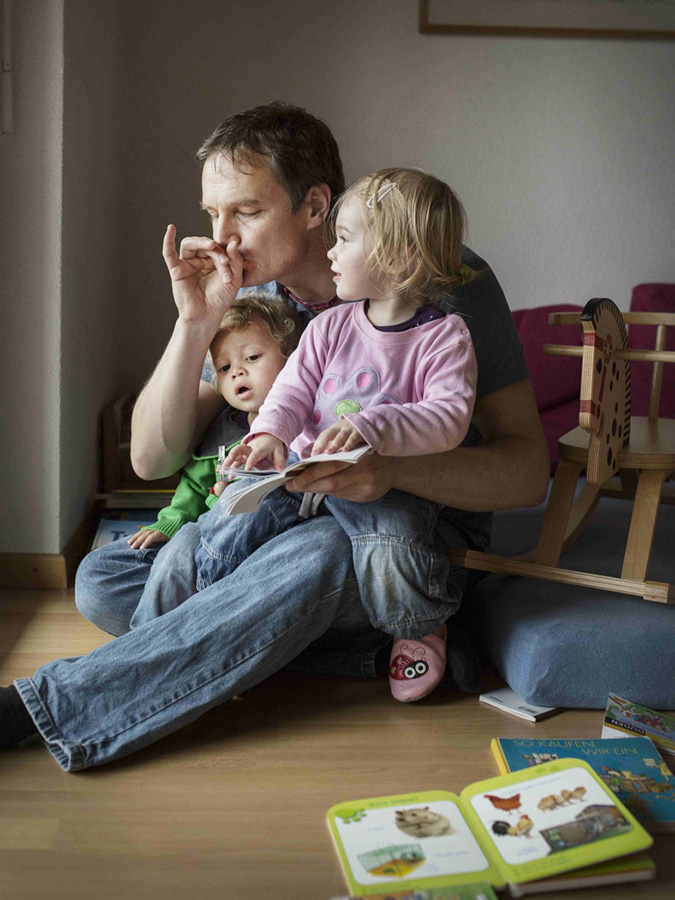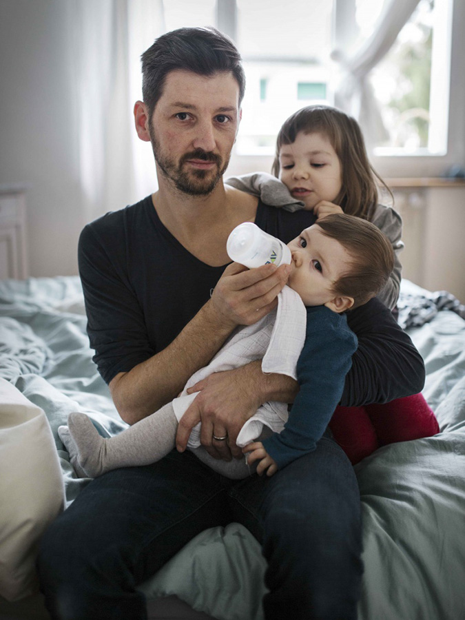 Des scènes quotidiennes avec des bambins... Mais au lieu de montrer des mères, le photographe Johan Bävman se focalise sur les pères. La démarche de MenCare vise à casser le cliché du pater familias et à révéler une autre réalité sociale en Suisse.